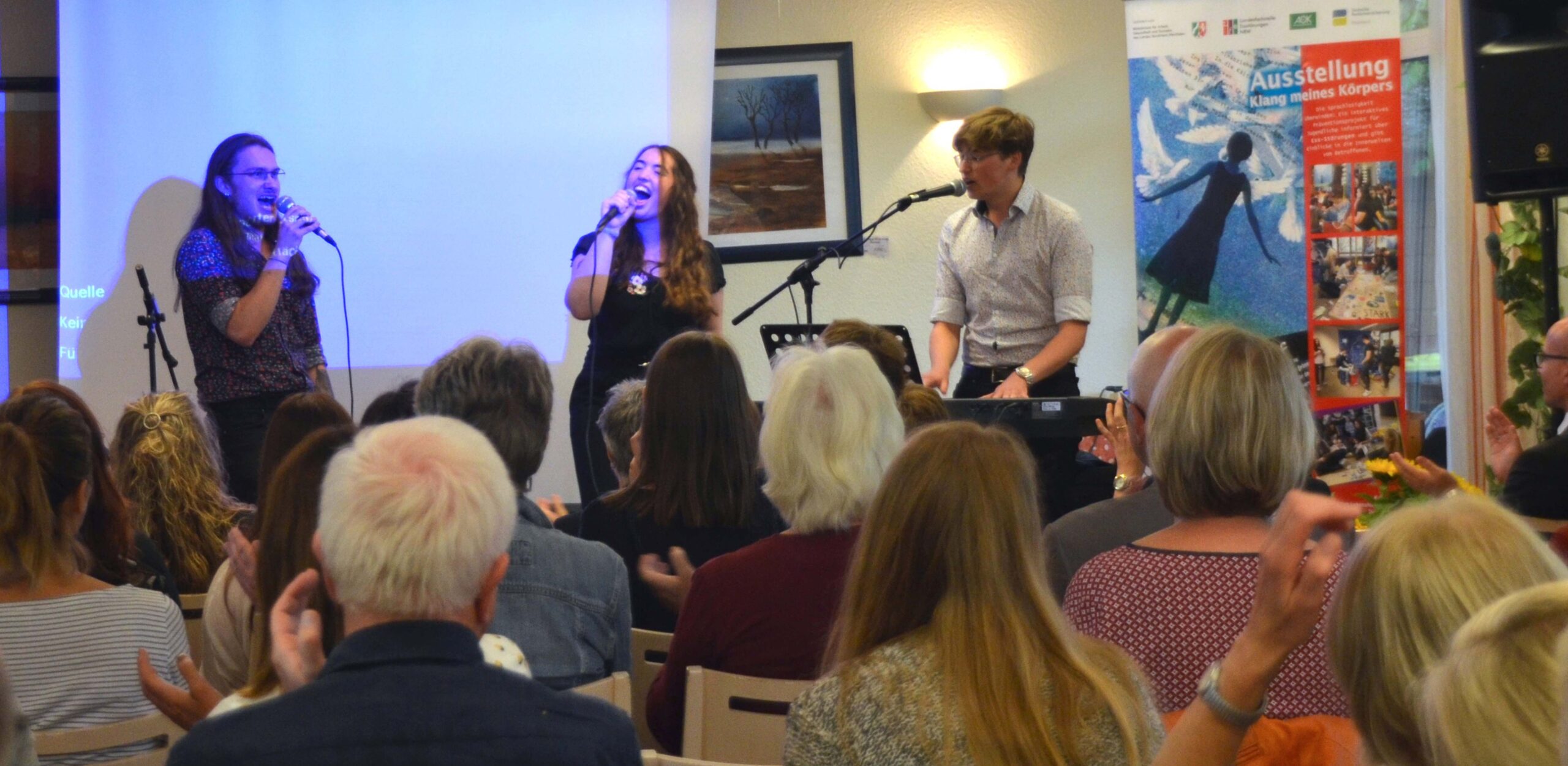 Am 24.09.2019 feierten wir mit rund 60 Gäste aus ganz NRW das zehnjährige Bestehen des Präventionsprojektes „Klang meines Körpers NRW“ in Kooperation mit der Fachambulanz der Caritas Sozialdienste in Neuss. Glückwünsche und Grußworte überbrachten u.a. Dr. Sandra Dybowski, Ministerium für Arbeit, Gesundheit und Soziales NRW, und Maria Spahn, Leiterin der Landesfachstelle Essstörungen NRW.
